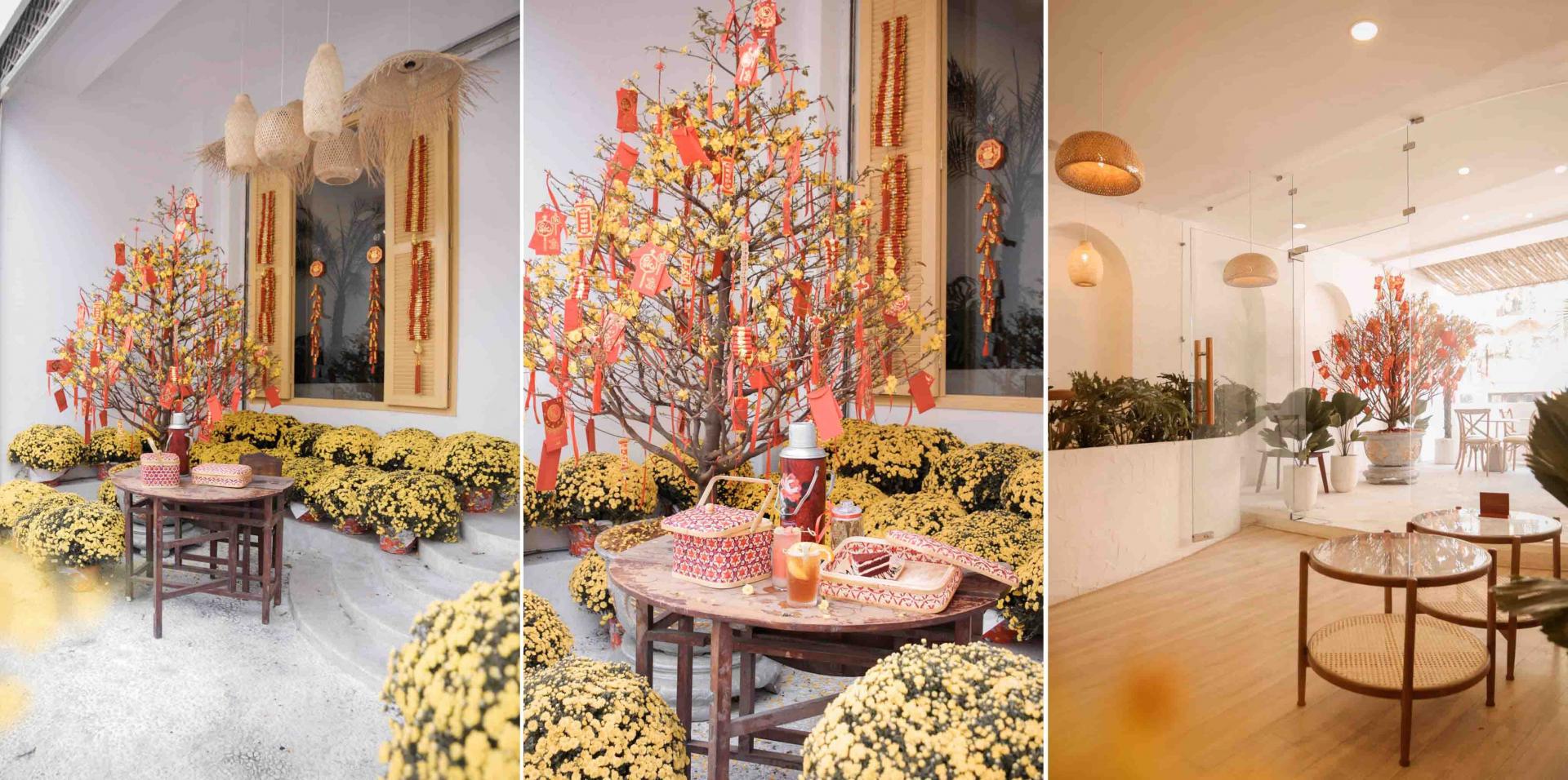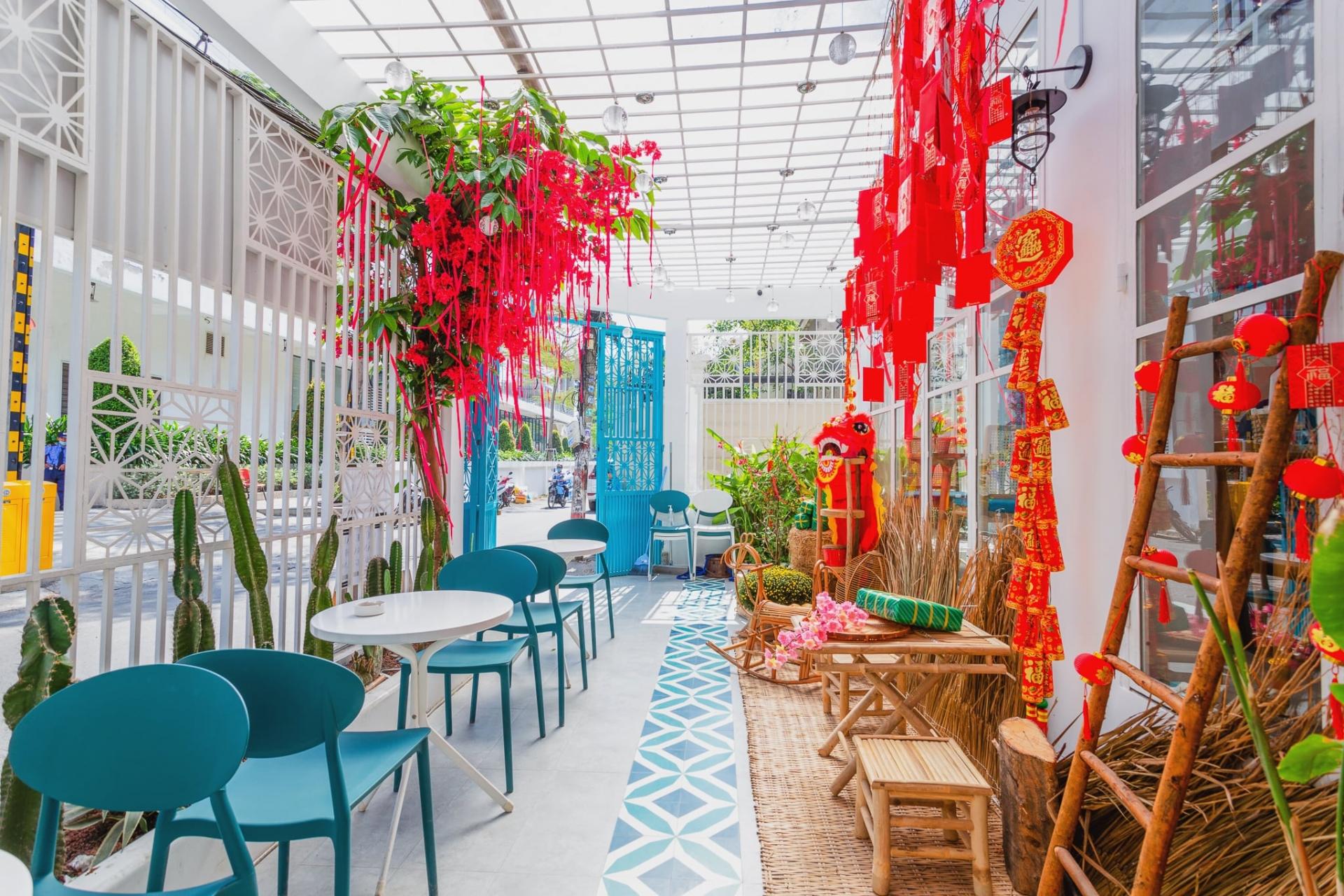 Tuy không gian quán không quá rộng nhưng vẫn có những góc chụp ảnh xinh xắn, vừa mang không khí truyền thống Tết Việt, vừa mang màu sắc Địa Trung Hải độc đáo. Những thức uống cũng mang màu sắc nhiệt đới bắt mắt của các loại trái cây, điển hình là “Tropical tea” (trà xoài và chanh dây). Quán cà phê này hứa hẹn sẽ là điểm đến mang lại cho bạn một mùa Tết nhiều màu sắc.